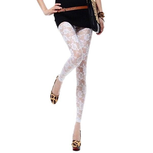 - 総レースレギンス 透け感 ウェストゴム スケスケ バラ柄 ストレッチ生地 ストッキング風 レディース フリーサイズ ホワイト