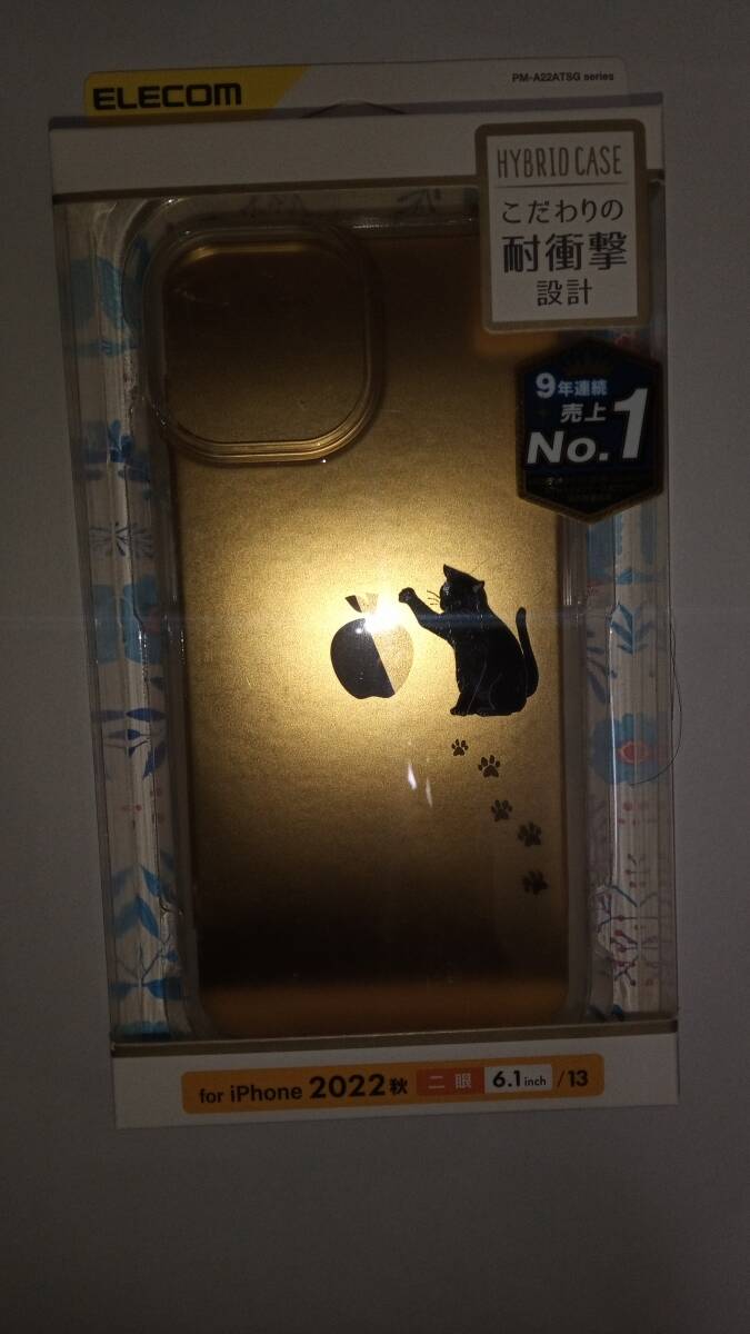 > ELECOM iPhone 13 iPhone 14 黒猫 クロネコ ハイブリッドケース テクスチャ 端末デザイン生かした愛らしい動物イラスト入った衝撃から守る