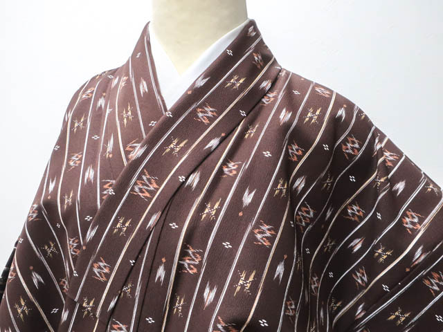 > 《京都一輝堂》【着物】小紋 琉球文 しつけ付 身丈約167cm 裄丈約66cm 25z01-334