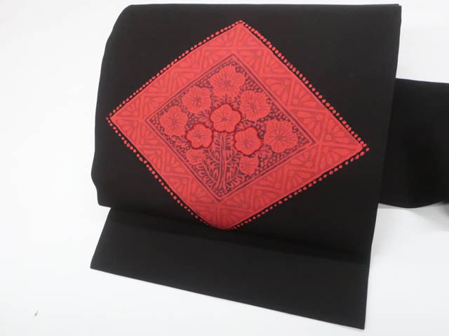 - 《京都一輝堂》リサイクル着物 九寸名古屋帯 太鼓柄 刺子 花 正絹 25b08-1347