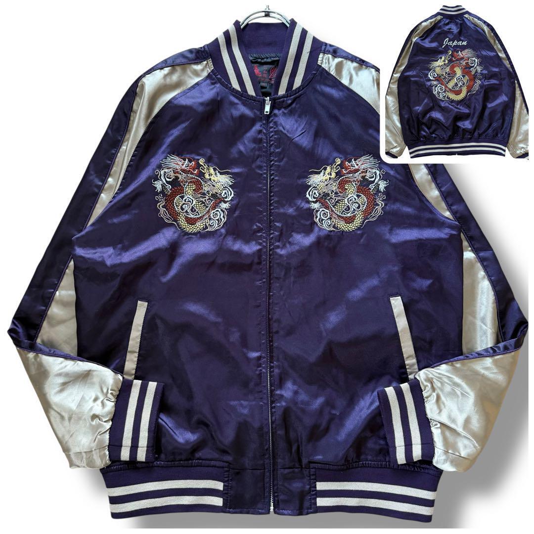 - 【希少XL/龍刺繍】一心如鏡 スカジャン ブルゾン スーベニアジャケット 横須賀 ジャンパー 和柄 パープル×ゴールド 大きいサイズ 人気色