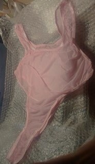 > ノーブランド製品、メンズビキニ、ボディースーツ、フロント下部8㎝ほどシーム、極薄半透け偽絹、縦横佳く伸びる生地、素材不明、Lサイズ、