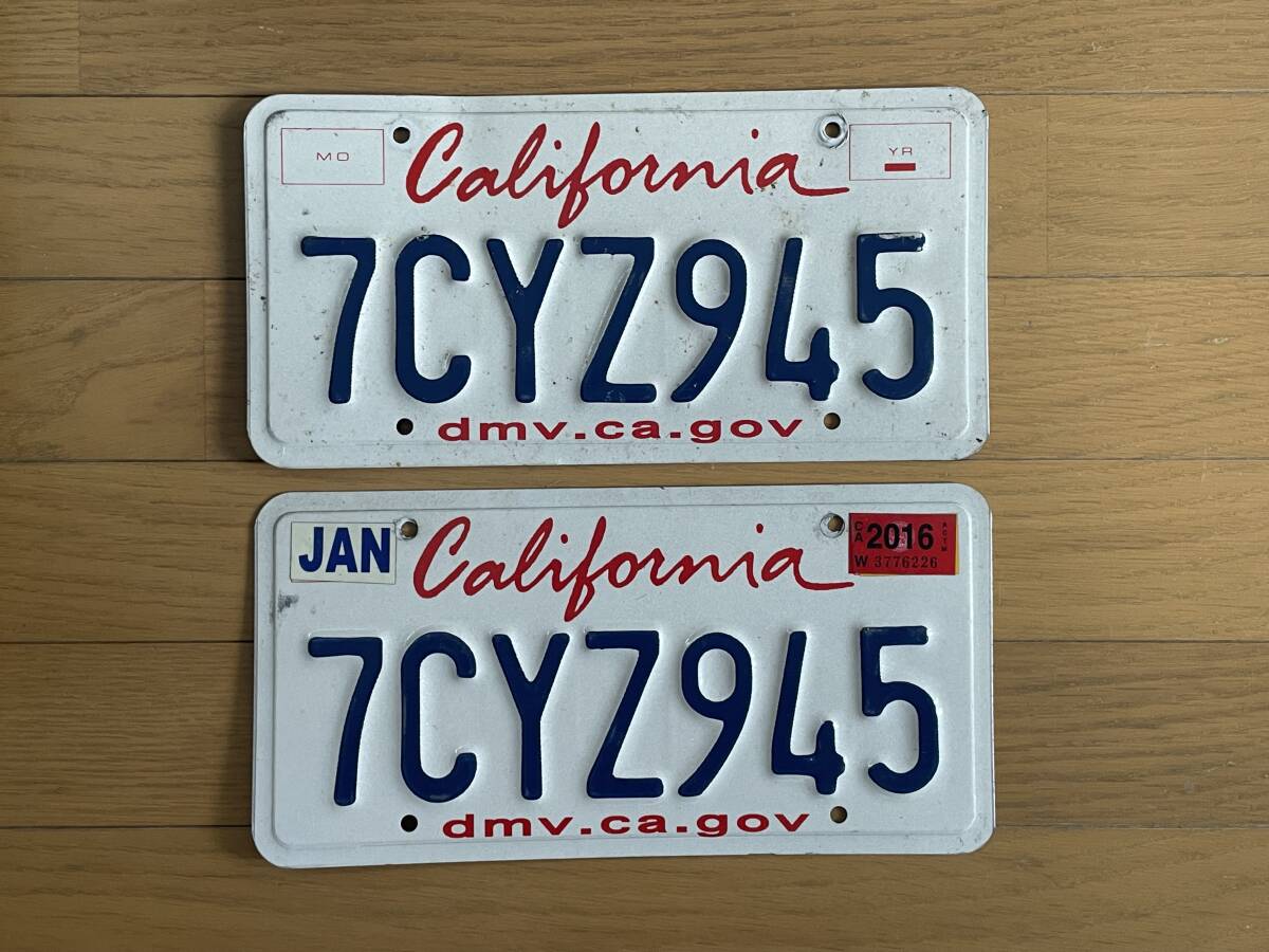 > カリフォルニア ライセンスプレート 7CYZ945 2枚セット USDM 世田谷ベース 米国トヨタ シボレー フォード ロサンゼルス ナンバープレート