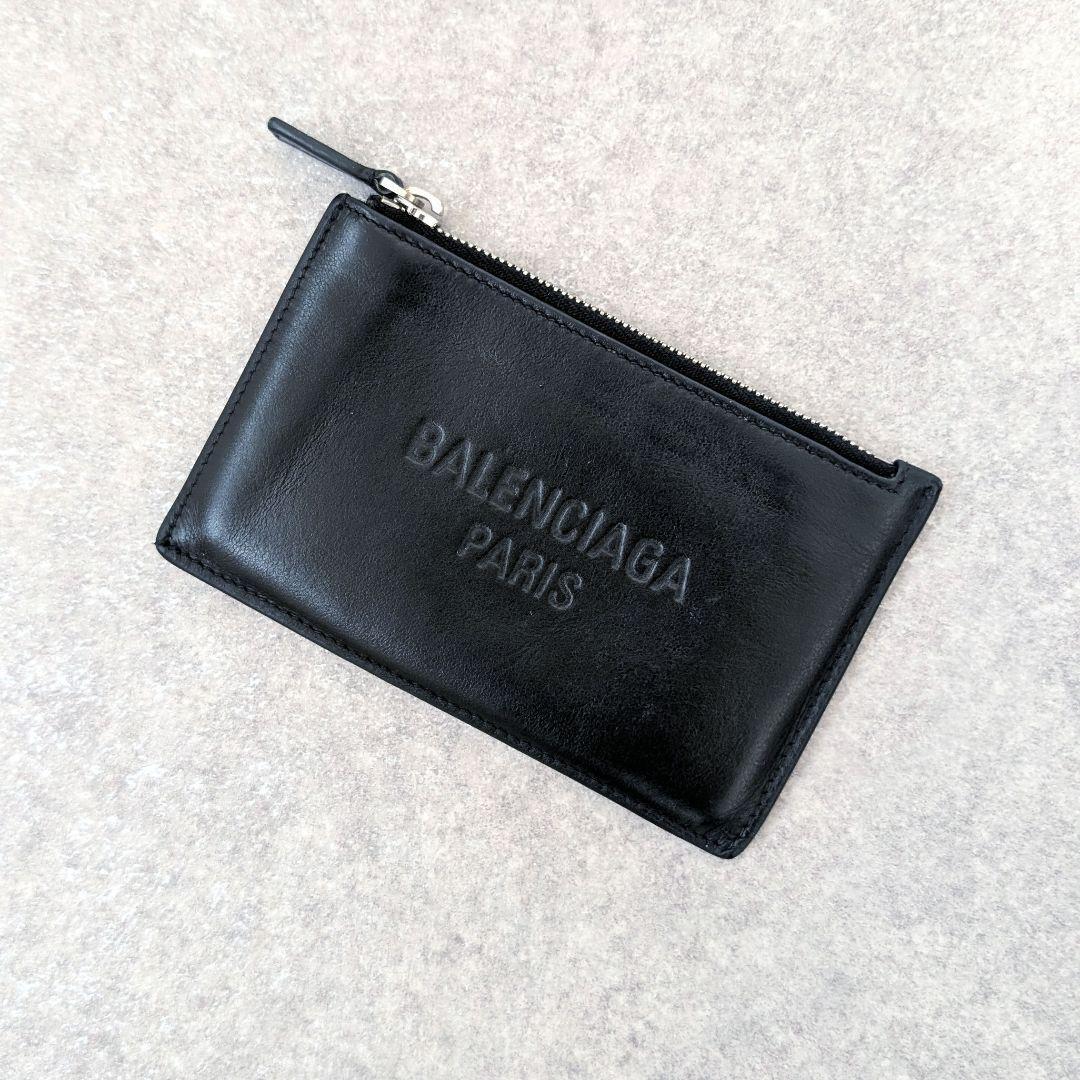 - 【BALENCIAGA バレンシアガ】 フラグメントケース ロゴ 型押し カードケース コインケース ブラック