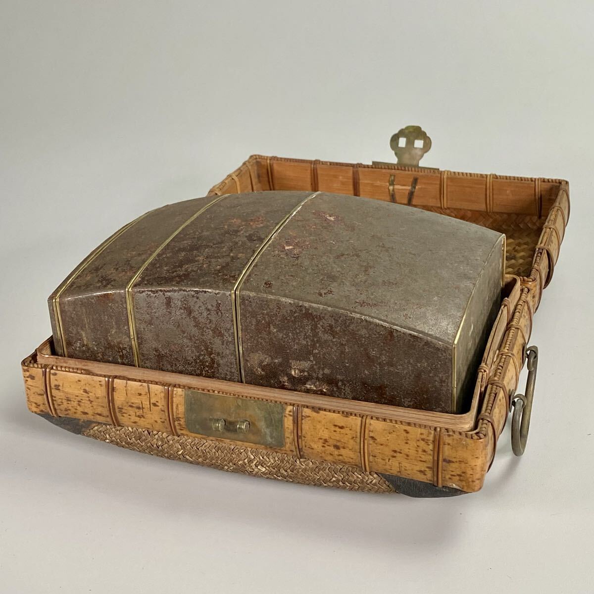 - ◆ 時代 竹製 道中弁当箱 20cm 銅入子付 煎茶籠 唐物 骨董 [J14.1]はま5