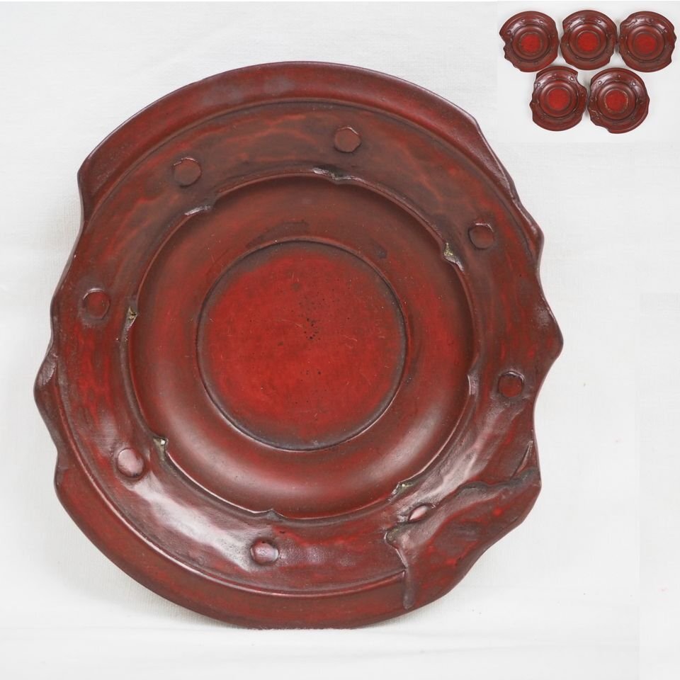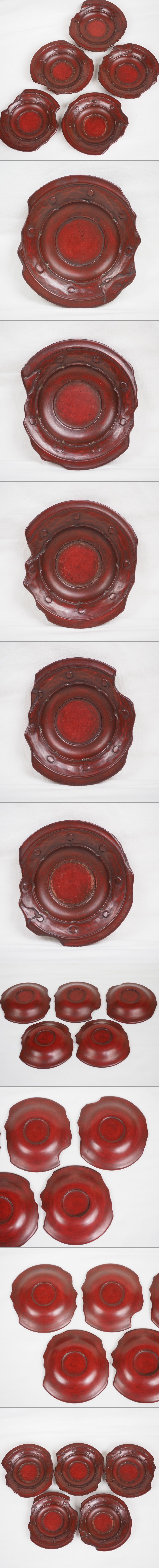 - 【金富士】値下げ中 時代物 珍しい鎌倉彫茶托5客 完品無傷 ★希少品★ 煎茶道具