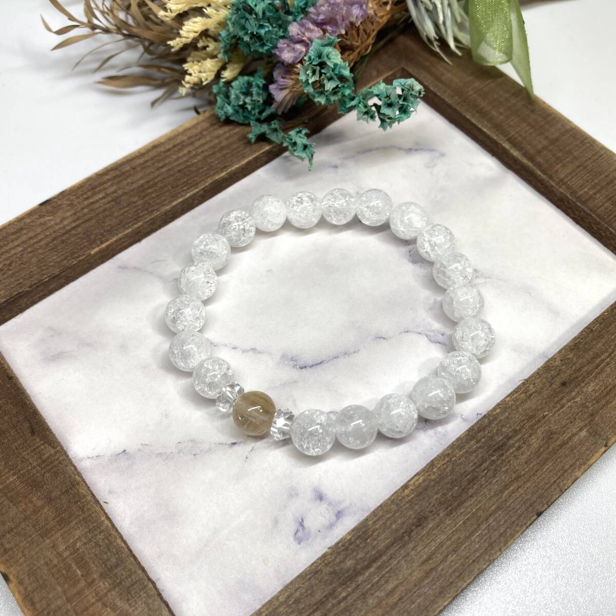 - クラック水晶&ルチルクォーツブレスレット パワーストーン レディース 女性 金運 仕事運 開運 数珠ブレス お守り