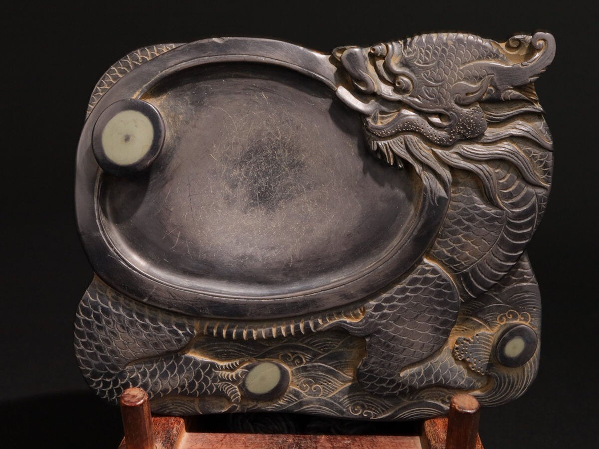 - 「古端石硯 龍竜献瑞文房端渓硯 汪應銓銘 清時代」手彫り 文房四宝 書道具 中国古美術 旧蔵出