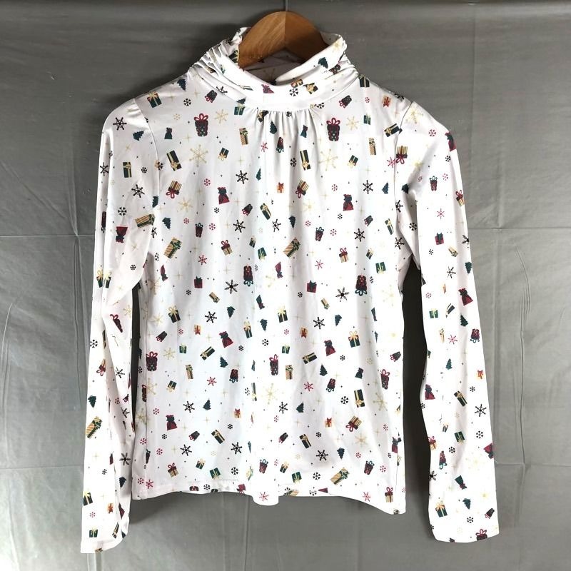 > タルボット TALBOTS カットソー 柄模様 クリスマスデザイン 長袖 ハイネック 白 Sサイズ 2025090400040