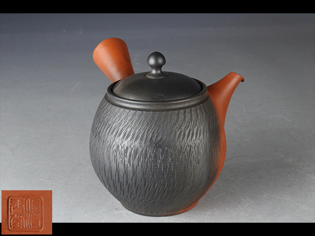 - 【西】I162 煎茶道具 無名異焼 佐渡玉堂 窯変 朱泥 横手急須