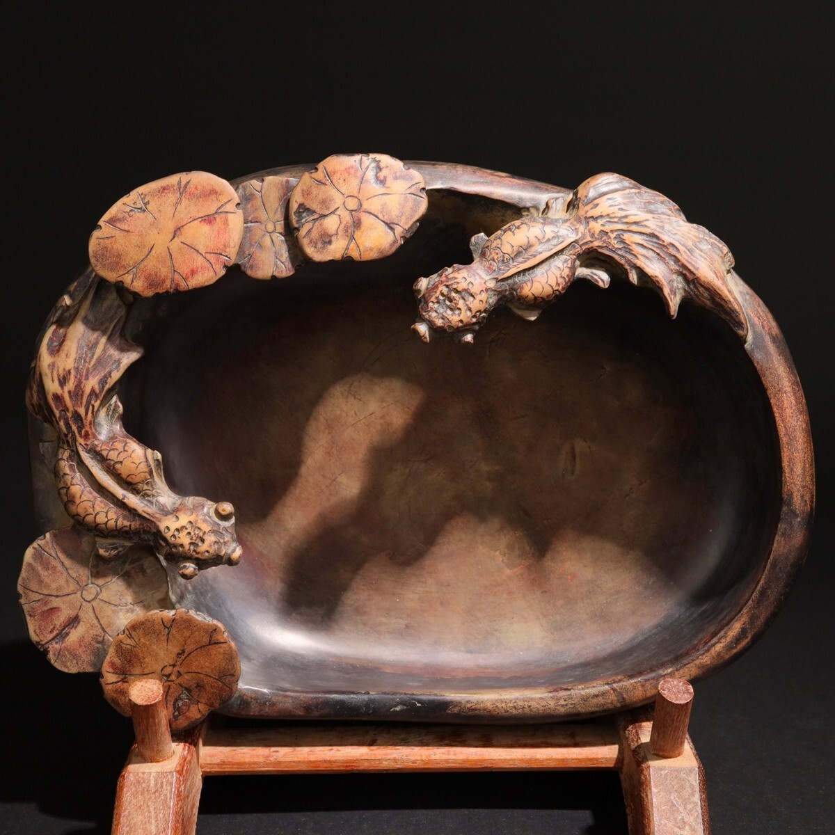 - 「古端石硯 金玉満堂文房墨海 丁易銘 清時代」手彫り 文房四宝 書道具 中国古美術 旧蔵出
