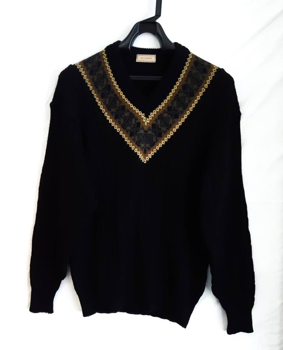 - 【菊水-502】MZ ジーシーコート G.C.COTTO/Vネック セーター/ブラック/メンズ/日本製(SK)