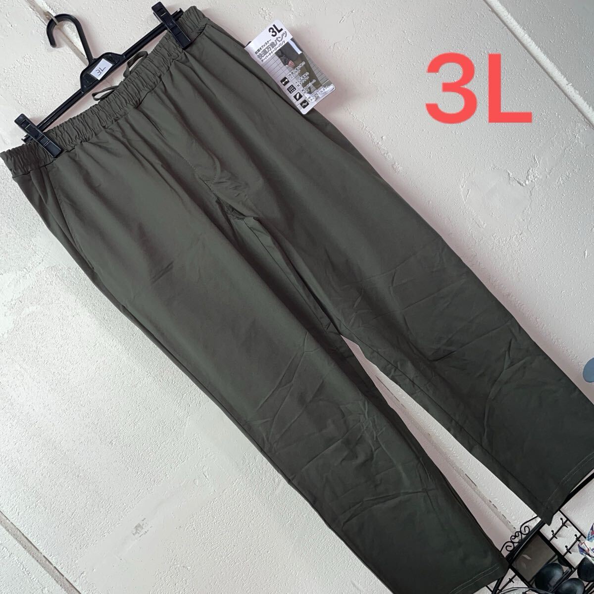- 3Lサイズメンズトイレファスナー付き軽量ストレッチパンツ モスグリーン