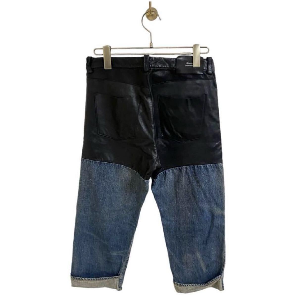 - 【アンダーカバー UNDERCOVER JONIO着 11AW mirror期 レザー 切替 ダメージ加工 クロップド デニム パンツ サイズ1 JUN TAKAHASHI JONIO】