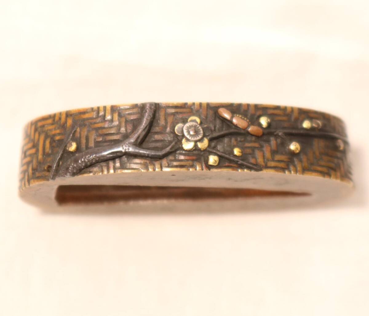 - 枝花小景図~編目地に金、銀象嵌入~刀剣縁頭乃縁金具 刀装具