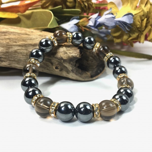 > ヘマタイト×スモーキークォーツ パワーストーン ブレスレット 天然石ブレス (ゴールド) 10mm メンズ・レディース 健康運 勝利 還暦祝い