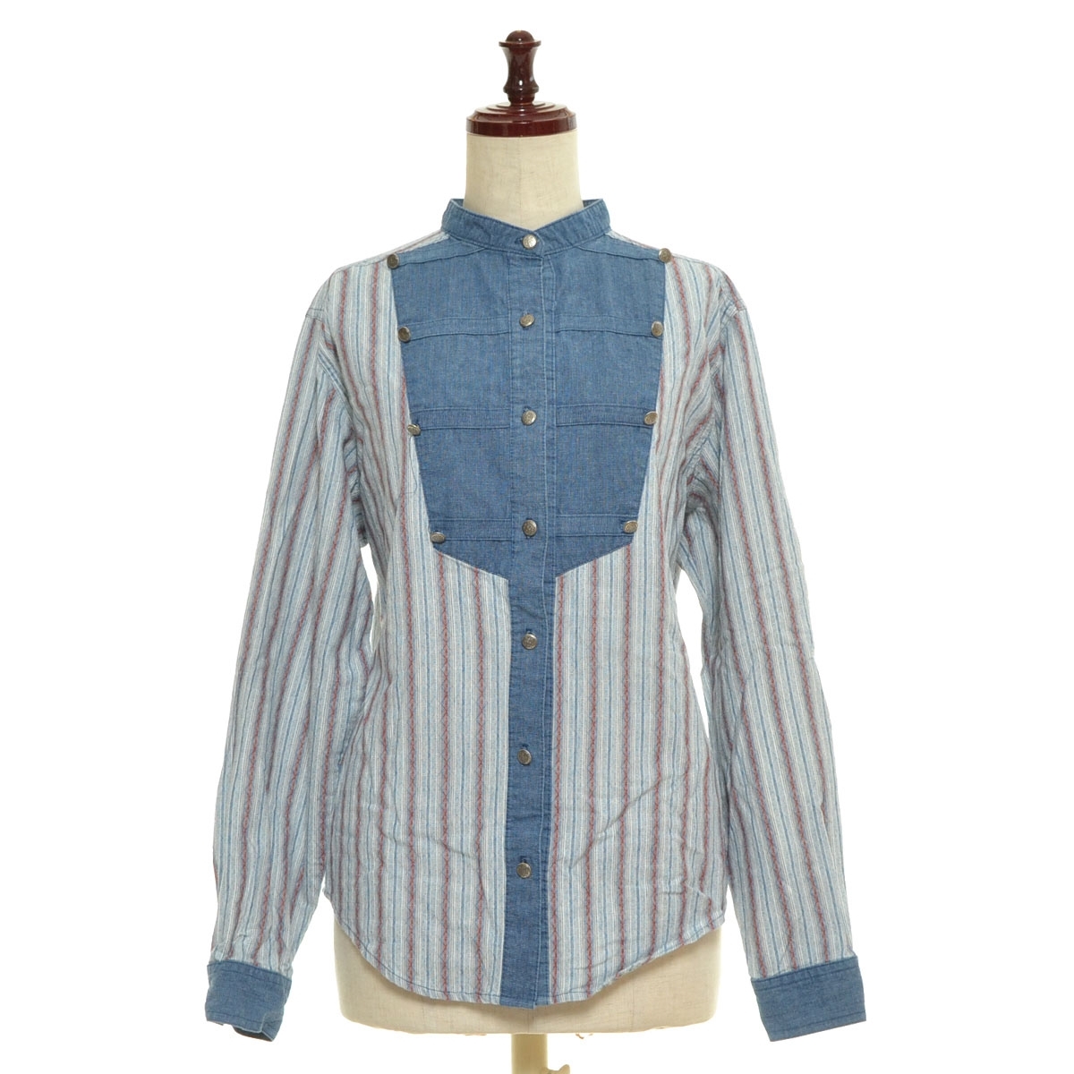 - ■560702 Wrangler ラングラー 長袖ブラウス ●異素材切替バンドカラーシャツ 古着 ヴィンテージ古着 レディース ブルー他