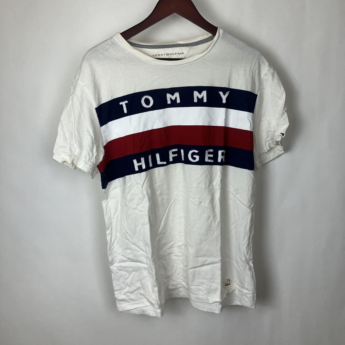 - トミーヒルフィガー メンズ 男性向け Lサイズ Tシャツ 半袖 半袖Tシャツ ホワイト 白 トップス ロゴ プリント