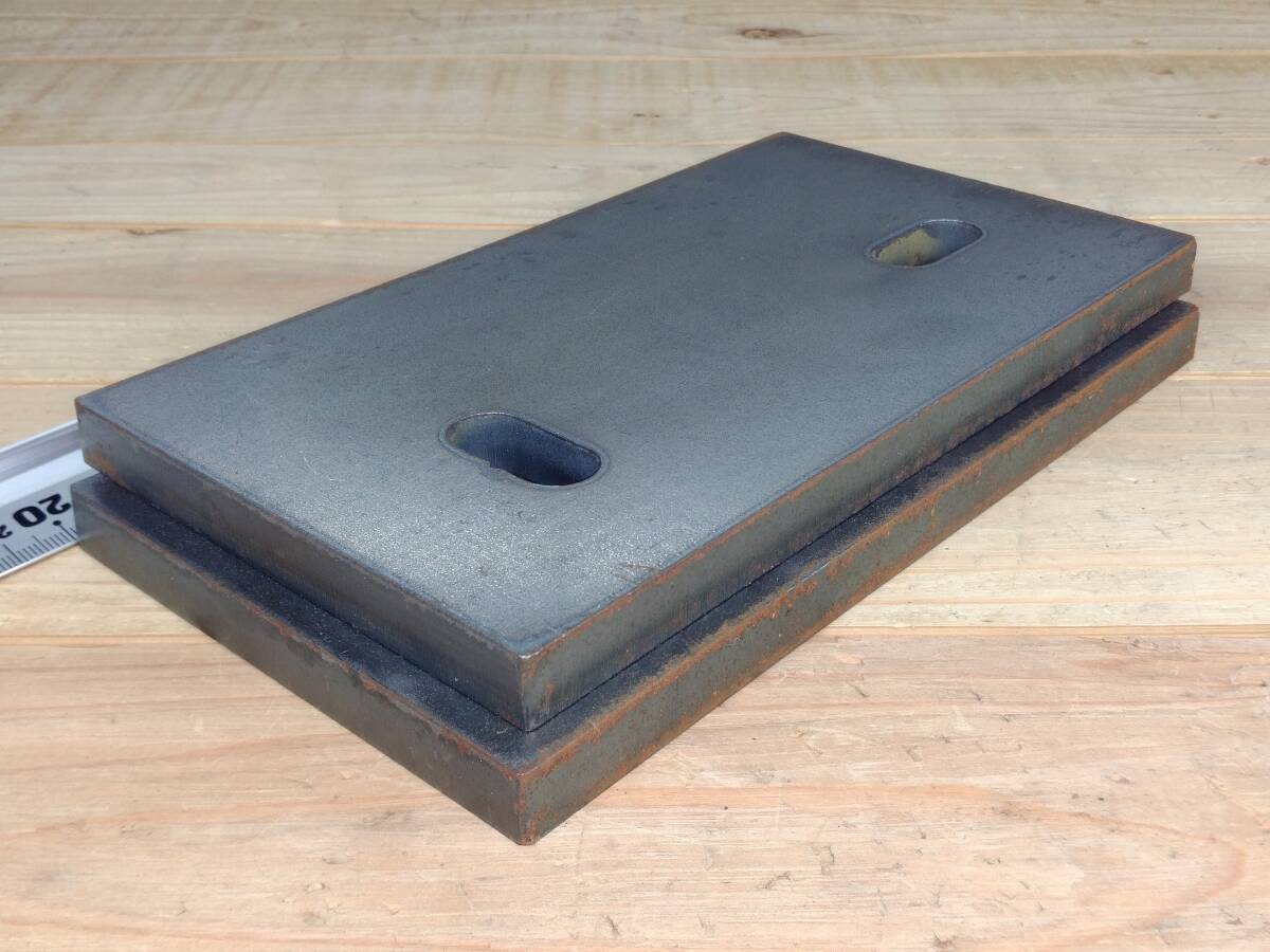 > (1)【送料420円~】鉄板 12mm厚 約111mm×約200mm 2枚セット (約11cm×約20cm) M12ボルト用長穴14x30 鋼材 つなぎ 繋ぎ プレート こねこ便