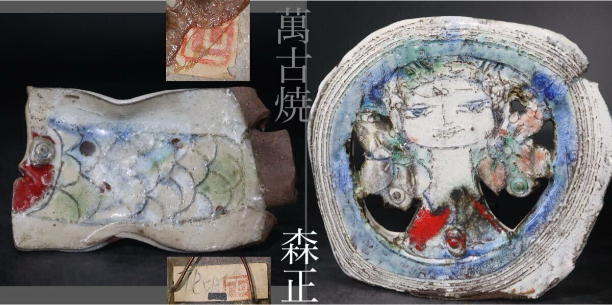 > 馬酔木窯 あしび 陶芸家 森正 仏画 菩薩 ・ 陶魚 壁掛け 計2点 / アート 魚 万古焼 萬古焼 陶器 .B1139