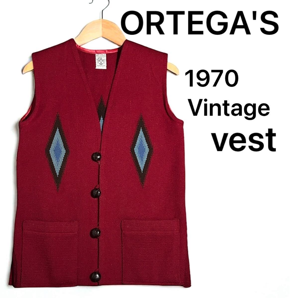 > 美品 〜1970's ORTEGA'S オルテガ ヴィンテージ ウール ラグ ベスト クルミボタン ポケット 赤 レッド M レア モデル USA アメリカ 裏原