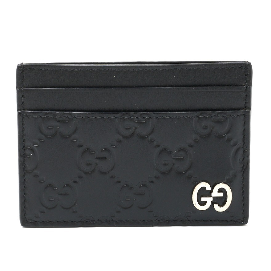 > GUCCI グッチ グッチシマレザー カードケース 473927 ウォレット 名刺入れ ブラック×シルバー金具 GG 小物 メンズ