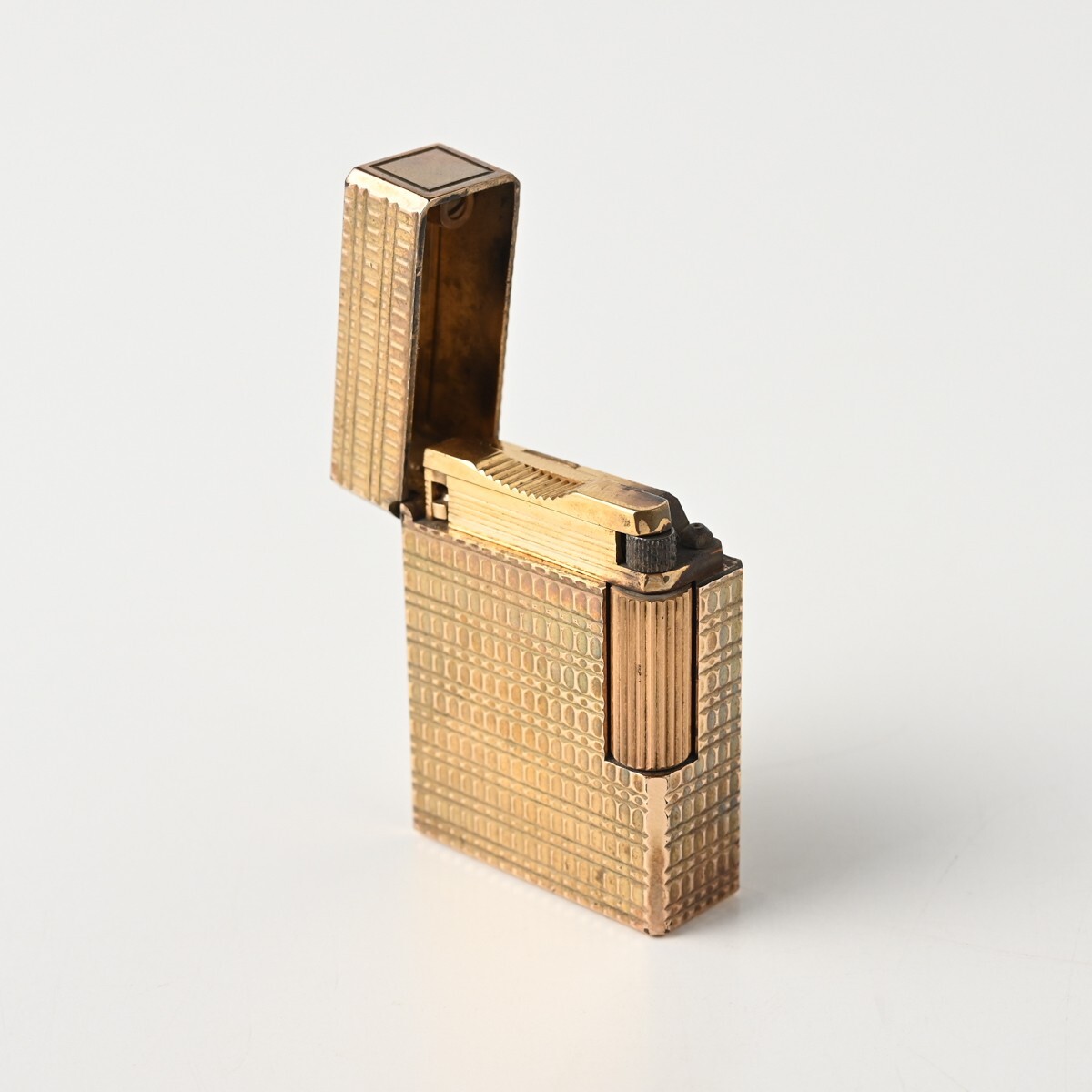 - 【火花確認済】デュポン ガスライター 格子ライン ゴールドカラー H8AS12 20μ フランス S.T. Dupon ヴィンテージ アンティーク 喫煙用具