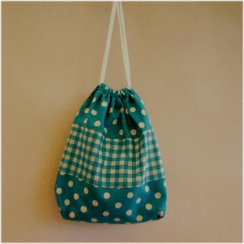 - 【入学、入園!】500円エメラルドドットパッチワーク巾着袋 【手作り小物】