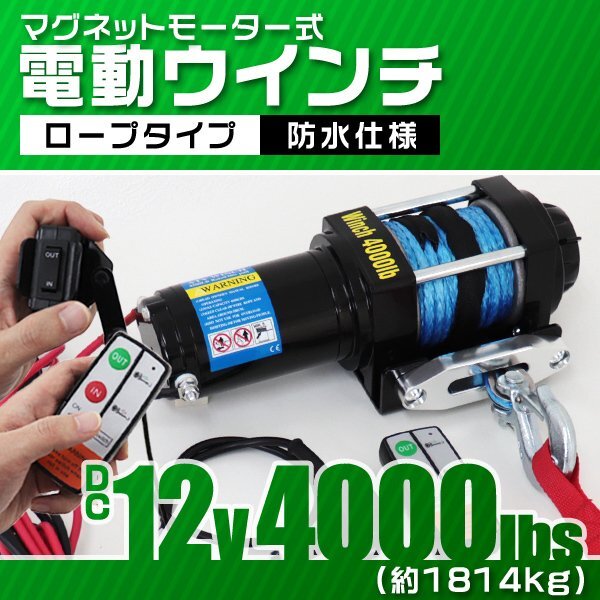 - 新品 リモコン付き 電動ウインチ DC12V 牽引力4000LBS(1814kg)ロープタイプ オフロード車 トラック ジムニー SUV車 ボート 牽引
