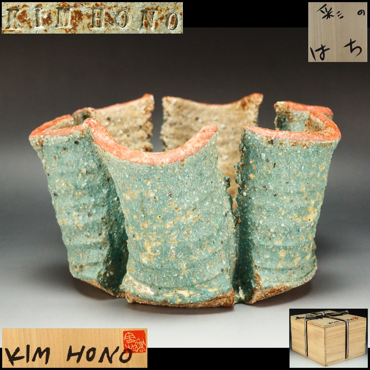 > 【治】『金憲鎬(Kim Hono)』作 「彩のはち」☆共箱 幅 19cm オブジェ モダン キムホノ 置物 菓子鉢 菓子器 菓子皿 本物保証 BCA29