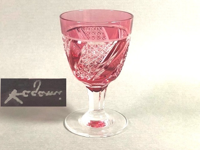 - ◎KAGAMI カガミクリスタル 赤色被せ切子 懐石杯 江戸切子 麻の葉紋「清澄」◎z55