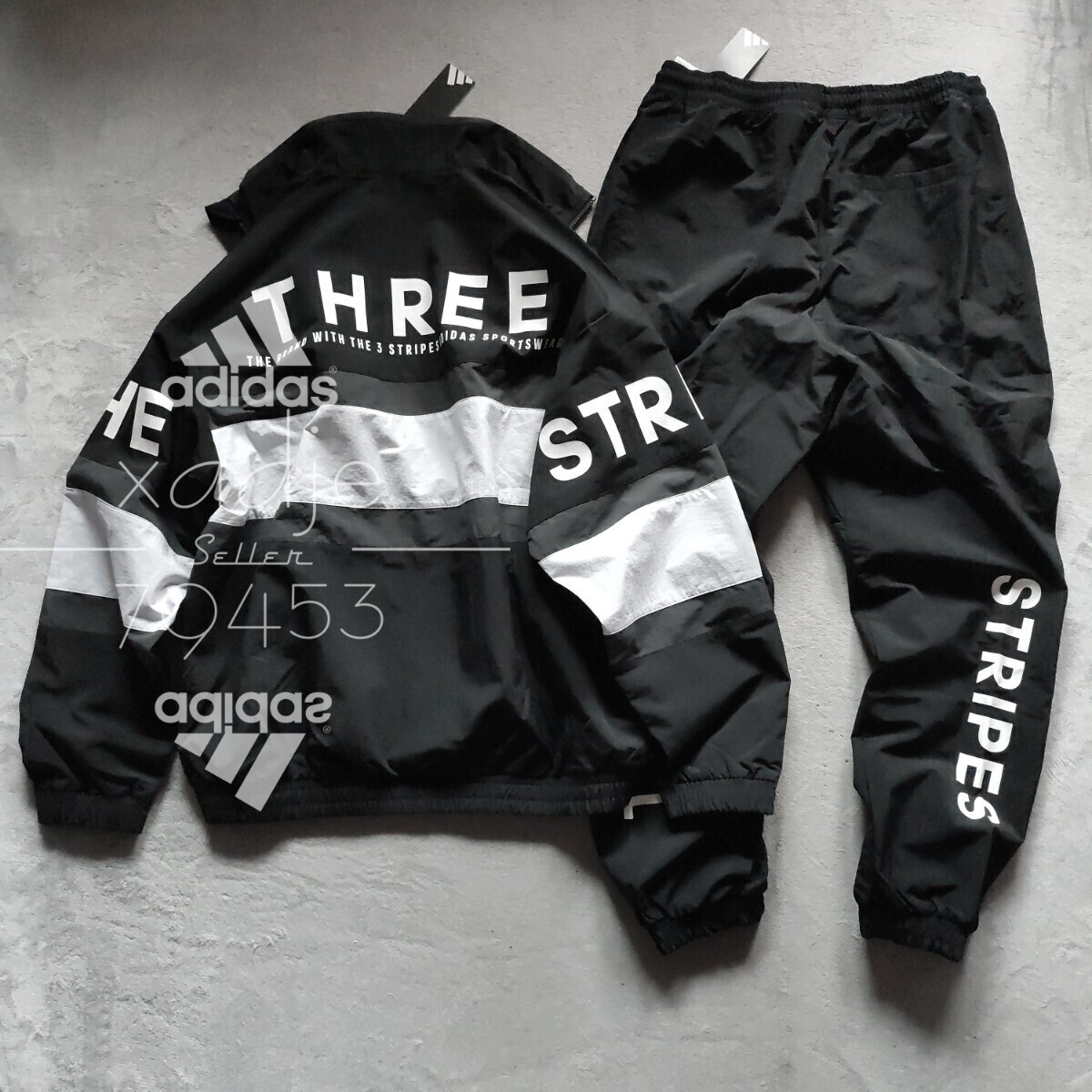 > 新品 正規品 adidas アディダス 上下セット ナイロン セットアップ 裏地メッシュ付き 薄手 黒 ブラック グレー 定価 18040円 ゆるめ 3XL