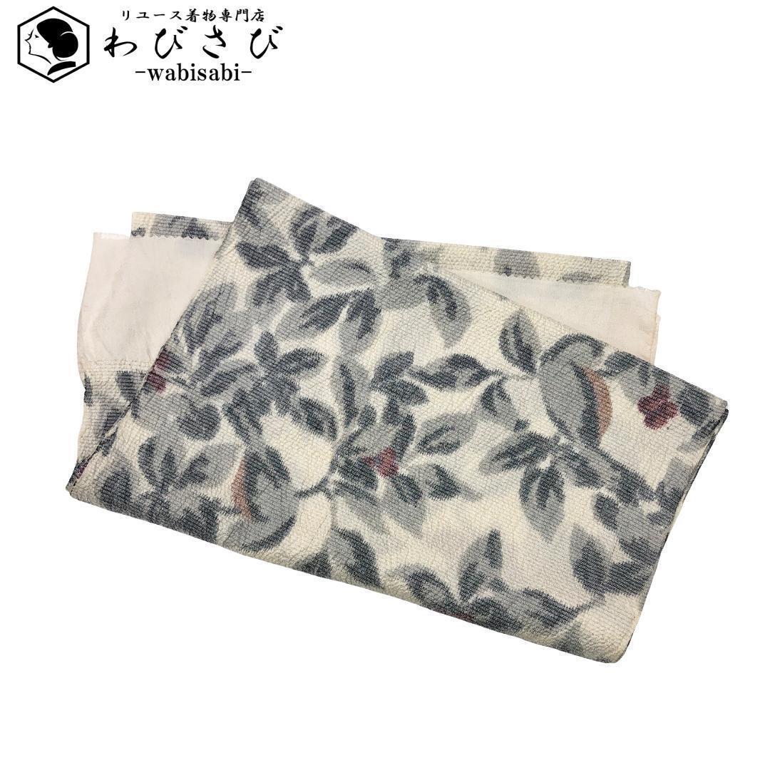 - 和装小物 帯揚げ 正絹 花に葉模様 鳥 乳白色 C-6533 着物 きもの kimono 和服 和装 中古 リサイクル着物 【送料無料】