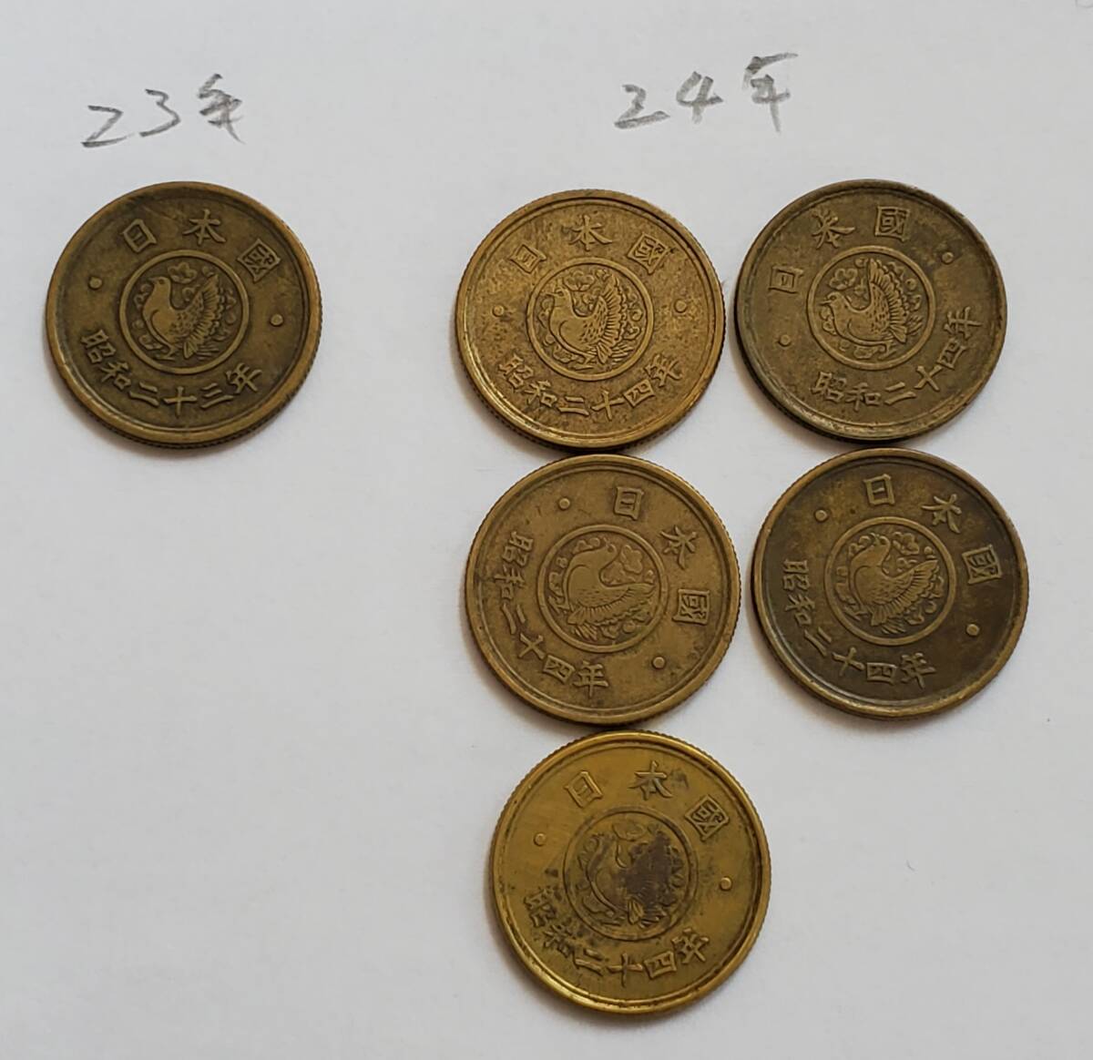 - 穴無し5円 昭和23年 1枚 昭和24年 5枚