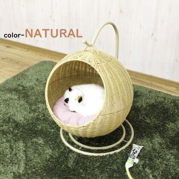 - 新品/送料込★後藤家具★ネコちゃんに癒し空間♪クッション付き!ドーム/ハンモック型!猫 ペットベッド【NATURAL/ハンギングチェア 吊り型