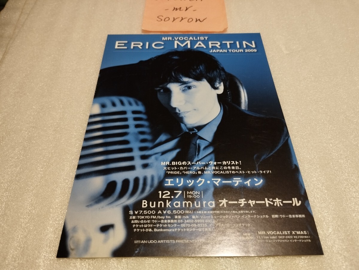 ・アーティスト: Eric Martin エリック・マーティン ・タイトル: 2009年12月7日 Bunkamura オーチャードホール ・サイズ: A5 // 片面印刷