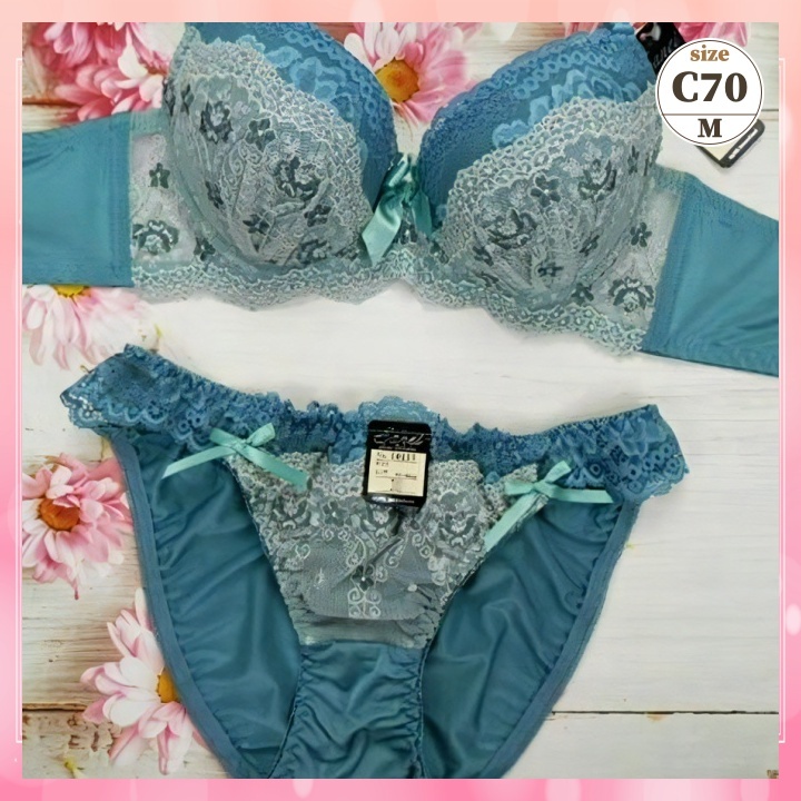 > Zc7028◎新品 ブラショーツセット【C70/M】下着 ランジェリー 脇高 美谷間 美胸 クラシカルアーチ 緑