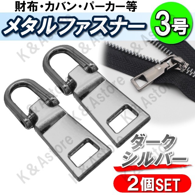 > 【匿名配送】ファスナー 引き手 2個セット チャック 持ち手 取っ手 引手 ジッパー ファスナートップ 修理 交換 財布 ダークシルバー 銀 3号