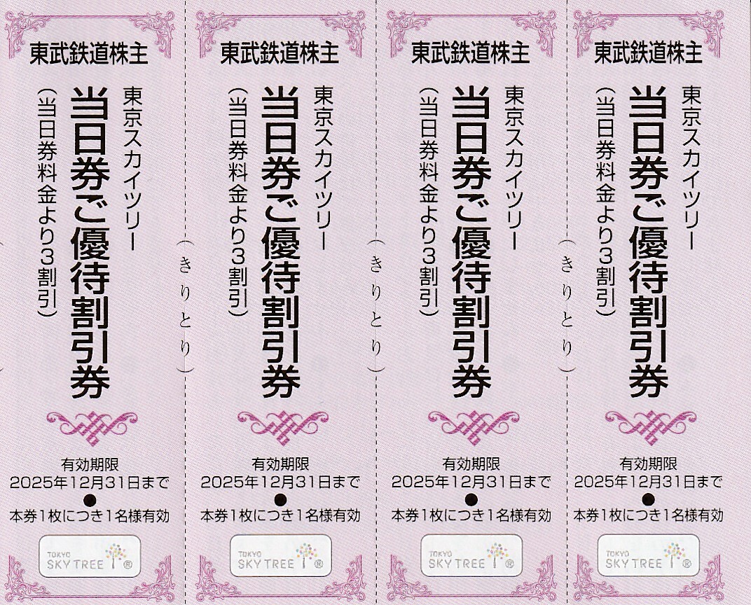 - 送料85円~★東武鉄道★株主優待割引券★東京スカイツリー★当日券ご優待割引券★4枚セット★即決