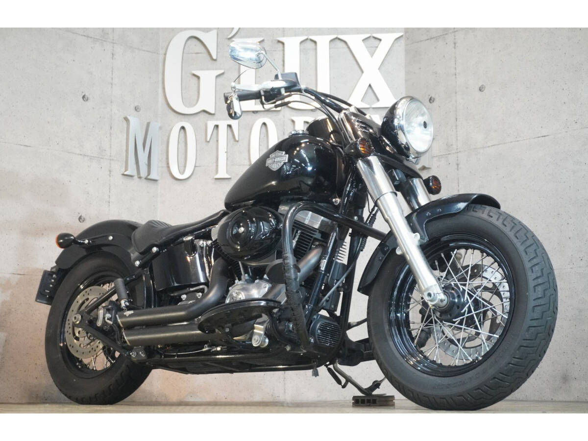 > ハーレーFLS ソフテイルスリム バンスマフラー No1スカルタイマーカバー ボバースタイル ローハンドル デグナーサイドバック