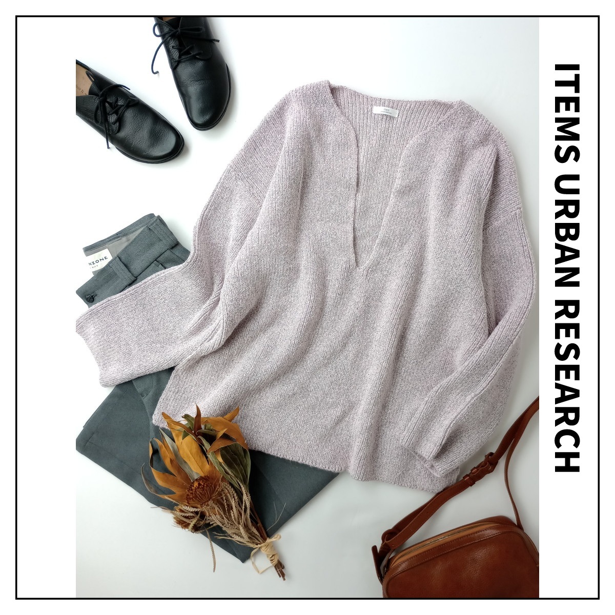 > 24年製 ITEMS URBAN RESEARCH「ひとさじの甘さがきいた大人色♪」片畦編み Vネック ニット プルオーバー 長袖 Free ピンク系(42M+2168)