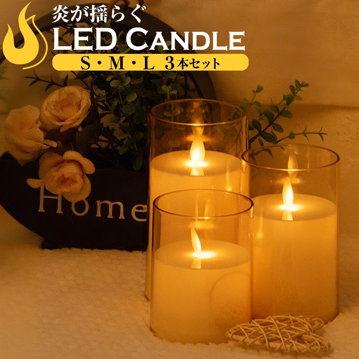 - LEDキャンドルライト 3サイズセット ゆらめく炎 電池式 安全 おしゃれ 北欧風 アンティーク ろうそく風