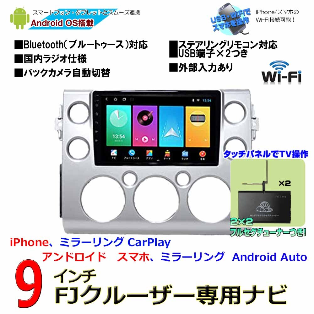 - FJクルーザー専用9インチナビ地デジ2x2フルセグチューナーセットiPhoneCarPlayスマホandroidautoミラリングRAM2GROM32G