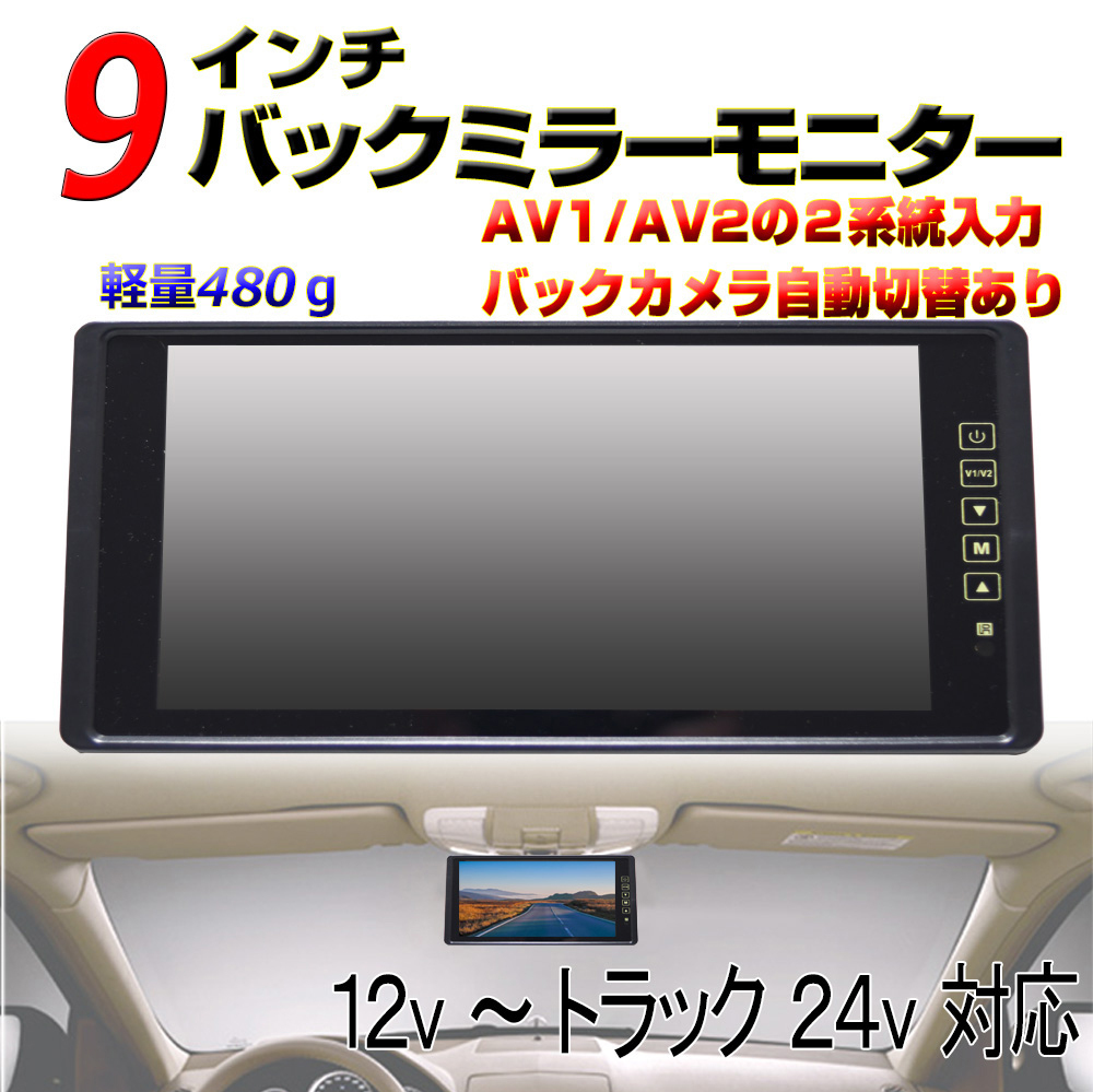 > トラックも9インチバックミラモニター 入力2系統 画像反転 タッチボタン カメラ自動切替 オート電源 12v 24v トラックも対応[CY6]