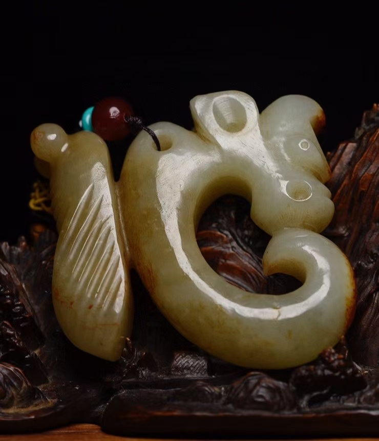 - 『館蔵珍品 和田玉製 細密彫 豬龍 置物 賞物』文房具 書道品 貴重物品 収蔵品 中国古美術 時代物 古董品