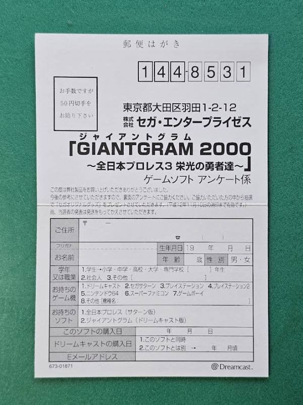 - アンケートハガキのみ ジャイアントグラム2000全日本プロレス3栄光の勇者達 DC ドリキャス ドリームキャスト Dreamcast セガ 同梱発送可