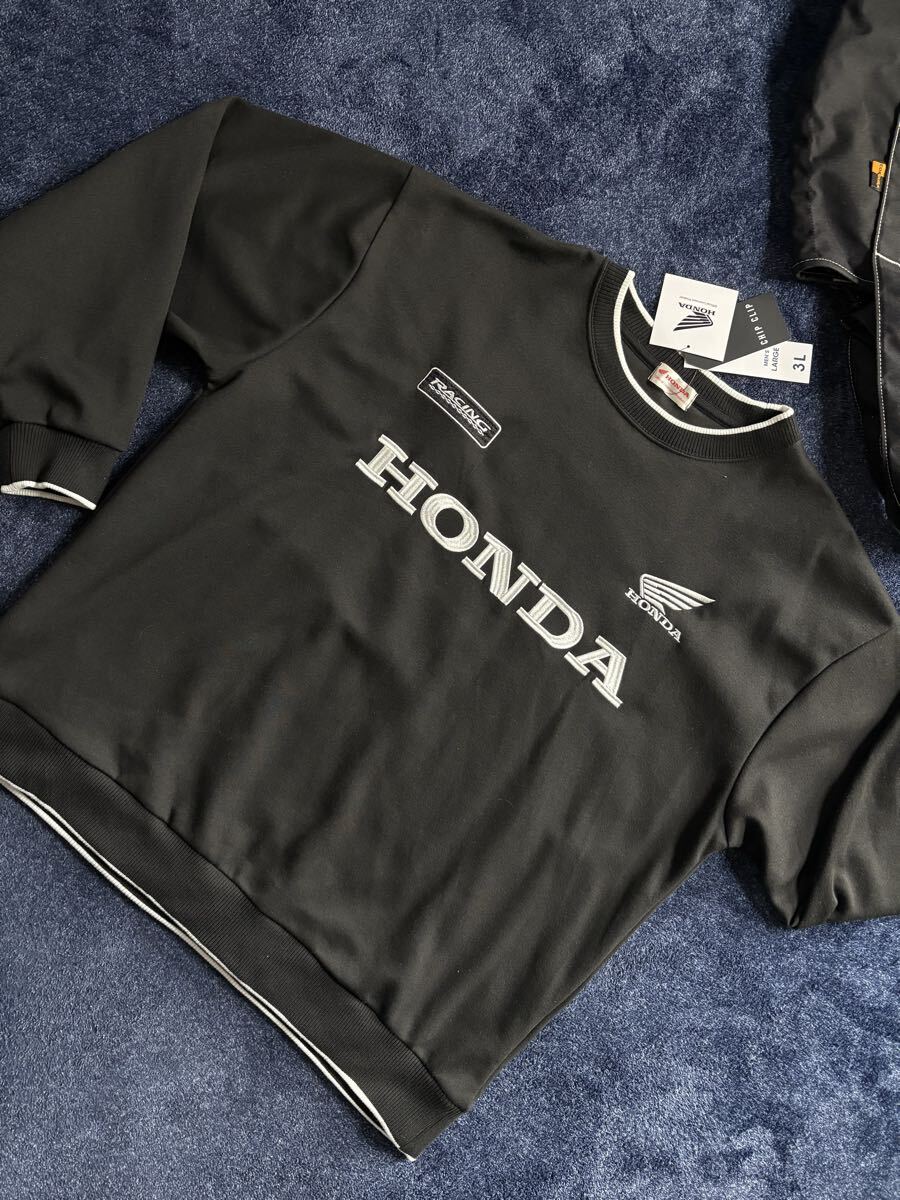 > 新品 HONDA ホンダ 豪華立体BIGロゴ刺繍 ホンダ クルーネック スウェット 長袖 ブラック size3L HONDA Official Licensed Product
