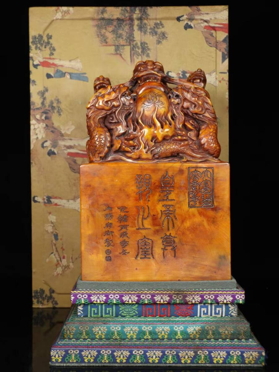 - 玉石 大清光緒年 田黄印章 寿山石彫 龍紋 印章 文房具 書道品 古擺件 古置物 賞物 手彫 極細工 中国古玩 骨董品 時代物 稀少唐物