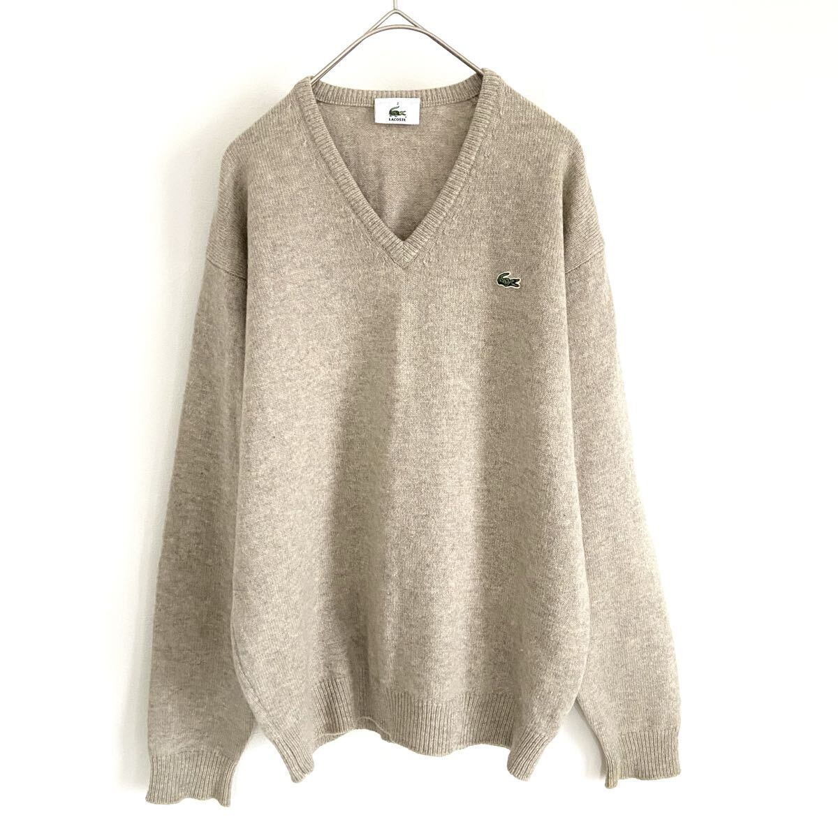 - 美品★【LACOSTE/ラコステ】ワンポイント刺繍 Vネック ラムウールニットセーター/アイボリー/2表記/衝撃プライス!ベーシックモデル★B97