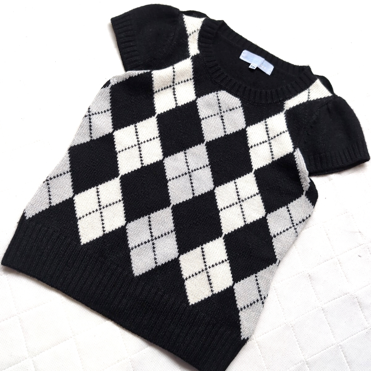 - 【KUMIKYOKU PURETE】組曲/半袖ニット(TM140cm)/アーガイル柄.黒/ トップス.あったかおしゃれ